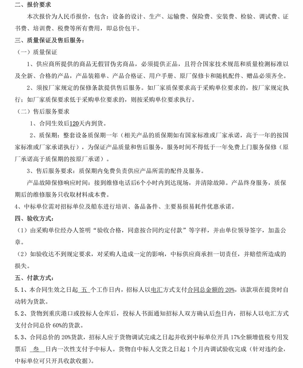 蓬安縣地方海事處33米應急救援艇機電設備采購