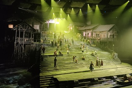 《重慶·1949》舞臺(tái)劇是以重慶解放當(dāng)日為大背景,講述了眾多被關(guān)押在渣滓洞、白公館的中共共產(chǎn)黨人,經(jīng)受住種種酷刑折磨,不折不撓、寧死不屈的故事,再現(xiàn)了中國人民解放軍解放重慶,并與重慶人民一起保衛(wèi)城市的宏大場景。